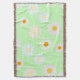 Cute watercolor colourful Daisy Pattern Green Throw Blanket