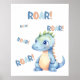 Cute Watercolor Dinosaur Nursery Poster