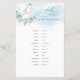 This amazing boho style Baby Shower design for Baby Word Scramble - funny boy Baby Shower game features watercolor hand painted cute baby elephant seating over the fresh eucalyptus greenery wreath and mixed dusty blue flowers - which makes this set suitable for a boy Baby Shower.
