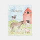 Farm animal baby blanket with adorable watercolor animals and barn on a watercolor sky and grass background. This farm animal baby blanket is easily customised with the text of your choice.