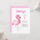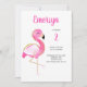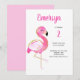 Cute watercolour pink and gold glitter flamingo girly birthday invitation.