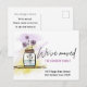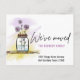A trendy moving announcement postcard with watercolor plants in bottle illustration.