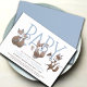 A cute and whimsical unique illustrated typography and watercolor woodland animals boy baby shower invitation in blue and brown. Cute foxes. Soft subdued colour blue and light cocoa brown.