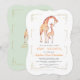 Cute Baby Shower card design featuring cute watercolour baby giraffe and mama giraffe, on white; on the back mama and girl giraffes on light green background. Use Personalise tool to add your info, change fonts, font's colours. For matching items, please, visit my Jungle Collection.