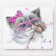 This design features a cute watercolor kitten wearing a pink and black bow.