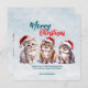 Cute watercolor kitty cat Santa Merry Christmas Holiday Card