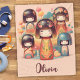 This personalised blush pink fleece blanket features cute watercolor Japanese kokeshi dolls.