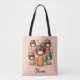 This personalised pink tote bag features cute watercolor Japanese kokeshi dolls.
