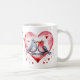 A watercolor of two cute birds in love surrounded by hearts on a mug to give on Valentine's Day to the one you love. The text can be changed, if desired. AI assisted graphic purchased with commercial use. Artwork: MokoDE