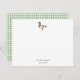 Rustic country farmhouse style cute watercolor mallard 'from the nursery of' flat thank you note card with green and white gingham back.