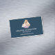 Professional magnetic business cards with a cute watercolor painting of a mother lion holding her baby cub. A pretty purple floral bouquet below them, adds a gentle touch to this sweet and adorable image. Dark blue background.