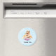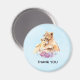 A thank you magnet with a cute watercolor painting of a mother lion holding her baby cub. A pretty purple floral bouquet below them, adds a gentle touch to this sweet and adorable image. Light blue background.