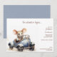 Stylish and fun, theses cute watercolor little mouse driving a blue car kid birthday party invitations are perfect for your little one. The design features a cute hand painted watercolor mouse who is smiling as he sits in a blue car and tex that can be customised to fit your party planning needs. The back features a polka dot pattern over a changeable background colour.