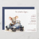 Stylish and fun, theses cute watercolor little mouse driving a blue car kid birthday party invitations are perfect for your little one. The design features a cute hand painted watercolor mouse who is smiling as he sits in a blue car and tex that can be customised to fit your party planning needs. The back features a polka dot pattern over a changeable background colour.