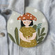 Cute Watercolor Mushroom girl button