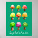 A cute adorable design of funny watercolor colourful mushrooms. This cute children's illustration is perfect for a girl's bedroom. Mushroom colourful pattern theme. Playful children's fun. Personalised name for kid's room.