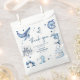 Ahoy, It's a Boy! Cute Nautical Baby Shower Favour Bag. Design features adorable seaside illustrations - dolphin, seagull, octopus, yacht, whale, compass and a seahorse. With a scattering of stars in ocean shades of blue. The elegant template is a combination of handwritten script lettering and serif fonts.