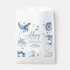 Ahoy, It's a Boy! Cute Nautical Baby Shower Favour Bag. Design features adorable seaside illustrations - dolphin, seagull, octopus, yacht, whale, compass and a seahorse. With a scattering of stars in ocean shades of blue. The elegant template is a combination of handwritten script lettering and serif fonts.