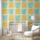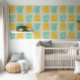 This is a cute pattern wallpaper for an accent wall for young kids or a nursery room. The pattern is gender neatral. The colour and pattern of this desing gives the space a cosy and colourful look.