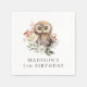 Cute, woodland-themed birthday party napkins featuring a watercolor illustration of a baby owl surrounded by winter white flowers, red holly berries, and lush green leaves. Personalise the owl birthday napkins with the child's name and age. Designed to coordinate with our Cute Watercolor Baby Animals Winter Birthday Party collection.