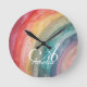 Cute Watercolor Personalised Rainbow Round Clock