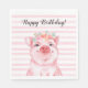 An adorable watercolor pig with a floral crown over a pink stripe background and the saying "Happy Birthday" that can easily be customised with just a few clicks!