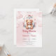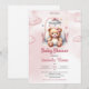 Cute watercolor pink girl teddy bear in crib invitation