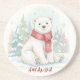 Protect your surfaces in cozy winter style with this adorable coaster featuring a cute watercolor polar bear in a snowy scene. Soft pastel tones and a charming design make it perfect for holiday décor, winter drinks, and seasonal home accents.