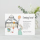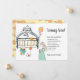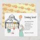 This adorable whimsical mum to be baby boy pregnancy announcement features a cute verse and expectant mum with stuffed animals waiting in the nursery for baby's arrival. Hues of peach and sepia on white. Rabbit holding balloon pattern on the reverse side of the card.