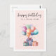Cute Watercolor Presents Balloons Friend Birthday Postcard