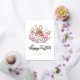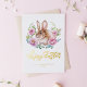 This gold foil Easter card features an adorable brown rabbit surrounded by a beautiful floral frame of pink flowers and greenery. Perfect for Easter, springtime, or any occasion that celebrates nature, this charming design brings a touch of whimsy and warmth to your greetings. The sweet bunny nestled in the soft pastel hues of flowers makes it an ideal card for family, friends, or loved ones. Share your message of love and hope with this lovely Easter bunny card.