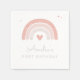 Those cute girl birthday party napkins feature a pink watercolor rainbow with stars and a heart. Personalise it with your little girl's details and utilise the editing tool to make further adjustments to font size, placement and colour.