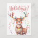 Cute Watercolor Reindeer and Christmas Lights Postcard