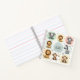 This adorable personalised kids' notebook features a charming collection of sketched animal-themed doodles featuring lions, zebras, elephants and monkeys. It is designed with soft, rounded lines and pastel backgrounds in mint green, baby pink, powder blue, and pale yellow.