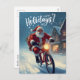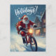 Cute Watercolor Santa on Bicycle Christmas Holiday Postcard
