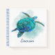 Personalise this cute coastal notebook featuring a cute watercolor sea turtle on a splash of ocean wave.