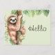 Cute Watercolor Sloth & Tropical Leaves Hello Postcard