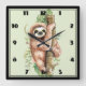 Cute Watercolor Sloth & Tropical Leaves Square Wall Clock