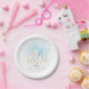 Elegant baby shower plates featuring a watercolor stork. Font in Dark Grey.