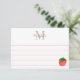 A cartoon style strawberry. Custom note cards with lines and monogram. Edit initial and name to customize.