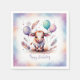 Cute Watercolor Texas Longhorn Balloons Birthday Napkin