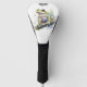 Add a touch of whimsical art to your golf bag with this custom headcover. The design features a delicate watercolor portrait of a tree frog, its eyes wide and full of life. Painted in soft, earthy tones, the art captures the quiet beauty of a forest pond and the gentle spirit of a beloved creature. It's the perfect accessory for anyone who feels a connection to nature, or simply loves a bit of personality on the course.