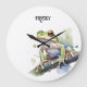 Bring a little piece of the wild into your home with this whimsical custom clock. The face features a charming watercolor portrait of a tree frog, its eyes wide and full of life. Painted in soft, earthy tones, the art captures the quiet beauty of a forest pond and the gentle spirit of a beloved creature. It’s the perfect accent for any room, bringing a sense of peaceful, natural charm to your wall.