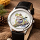 Carry a little piece of the wild with you with this whimsical custom watch. The face features a charming watercolor portrait of a tree frog, its eyes wide and full of life. Painted in soft, earthy tones, the art captures the quiet beauty of a forest pond and the gentle spirit of a beloved creature. It's the perfect blend of a functional timepiece and a beautiful accessory, bringing a sense of peaceful, natural charm to your wrist.