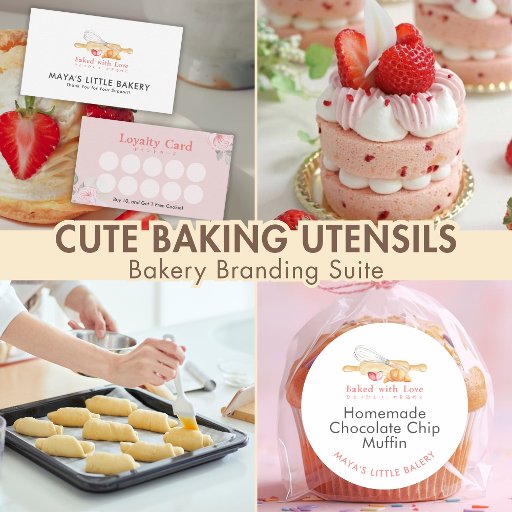 Cute Watercolor Baking Utensils Bakery BrandingDesigned by Junko Goto