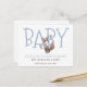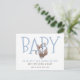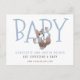 A cute and whimsical unique whimsical typography and watercolor woodland fox pregnancy announcement in blue and brown. Soft subdued colour blue and light cocoa brown.
