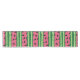 A table runner with a cute watermelon pattern. Green rind in layers of stripes along with a layer of pink stripes with black seeds inside.