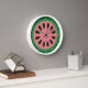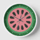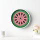 This cute clock features a round watermelon slice and thin white lines instead of numerals. The colours of the watermelon are fully customisable.