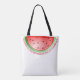 cute bag that is decorated with corn on the cob,watermelon, jalapenos peppers, hamburgers and hot dogs.
