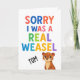 Adorable apology card featuring a sweet weasel character with humrous inside text about getting caught "red-handed" with sticky paws. Perfect for lighthearted apologies and making someone smile after a mishap. Generativecontent